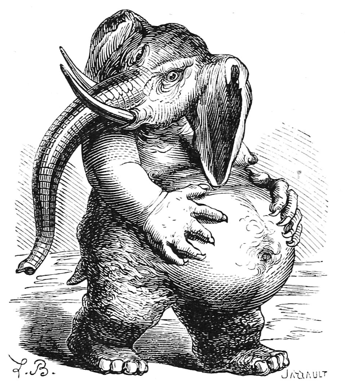 The ‘Freemason’s Quarterly Review’ (1934) interprets the “Serpentine Osiris” as an elephant, and seems to be connected to Samael-lilith. It describes the “Serpentine Osiris” as a composite solar-chthonic figure, Osiris in bovine form conjoined with the Serpent to symbolize the Sun’s descent into the underworld — an image later preserved in the constellation Capricornus and analogically expressed in the elephant, whose bull-like body and serpentine trunk were read as an Indianized form of this hybrid, a conception that closely parallels the Zoharic image of Samael (seen here as Set as Osiris’ shadow) as Samael “riding upon” the Serpent Lilith. In this interpretation, Samael corresponds to the planet Mars, Lilith to the planet Venus, and their joining forms Saturn, represented by the elephant in Persian manuscripts. These are the planets in the SPC, and the planet Mars in the SPC was seen as essentially “riding” Venus in conjunction, with Saturn overhead. In this interpretation, the planet Mars represents the trunk of the metaphorical elephant and the tusks are represented by the Venus and Saturnian crescent. The planet Saturn’s associated with both male and female deities (the ancient Indian mathematician Varāhamihira called Saturn a “hermaphrodite planet”), and could be made up of Samael and Lilith, the pair that form Behemoth and Leviathan. Samael and Saturn share some common assocations; both are represented by the Grim Reaper, and Lilith has the planetary symbol for Saturn on her sigil. The large stomach of Behemoth below could allude to a devouring aspect, as Saturn (Kronos) devours his children.